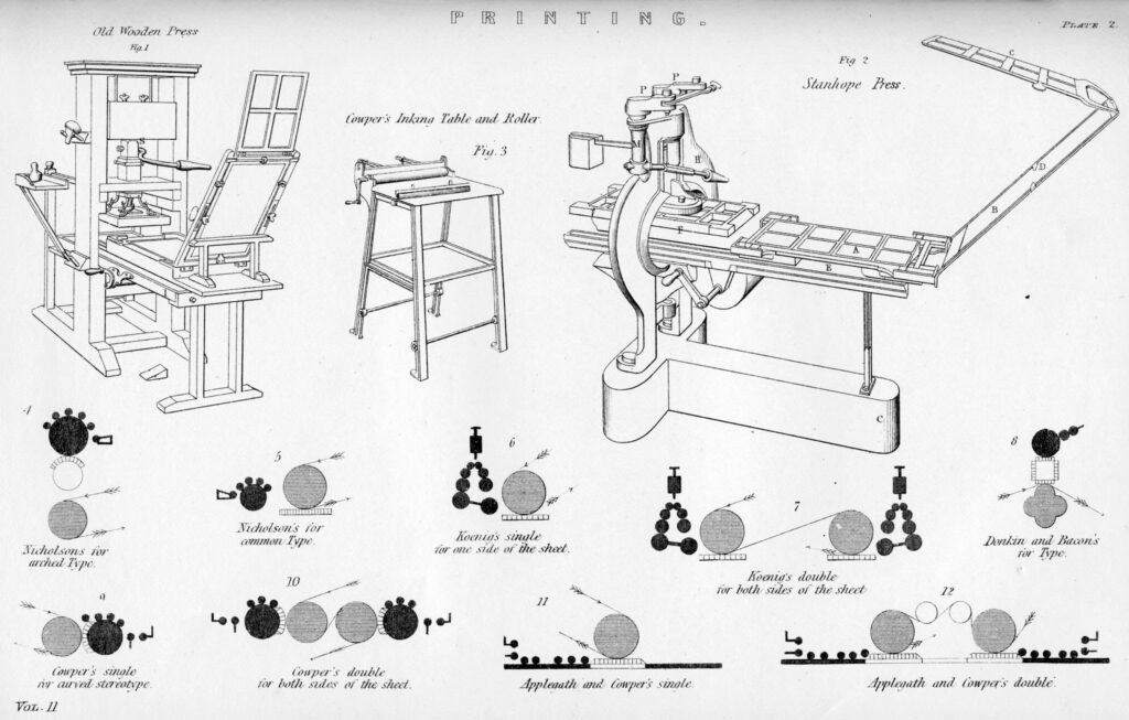 Dem Buchdruck, dem Stichtiefdruck, dem Offsetdruck und dem Lettersetdruck.